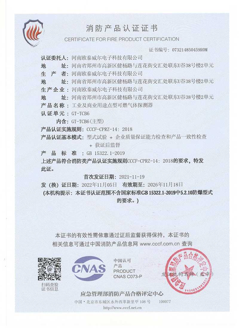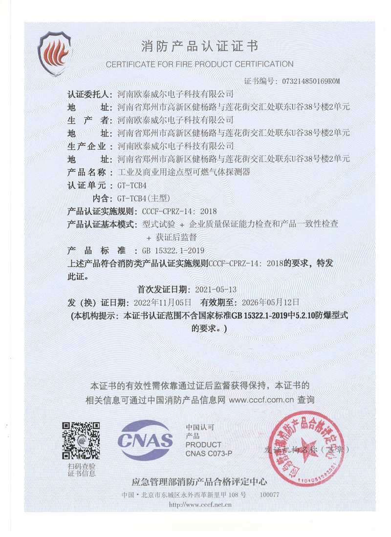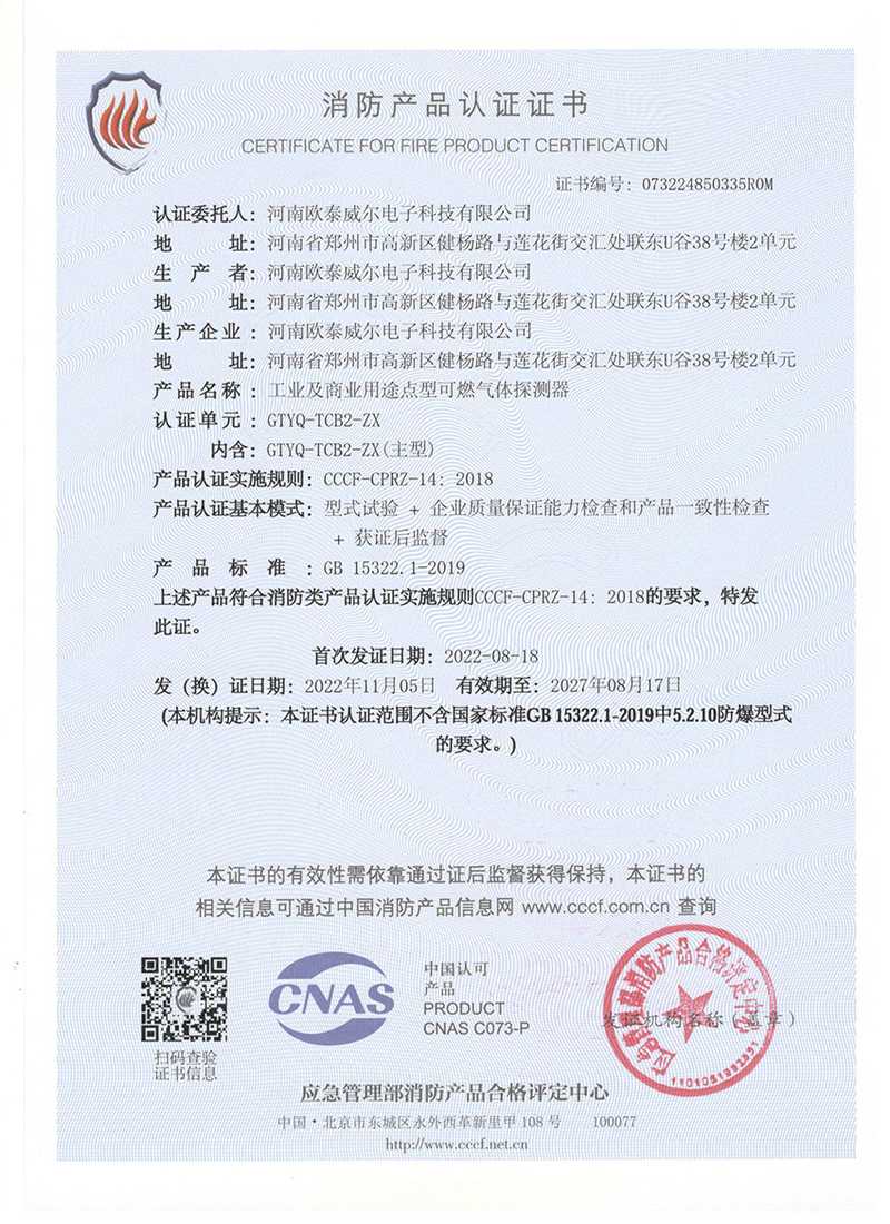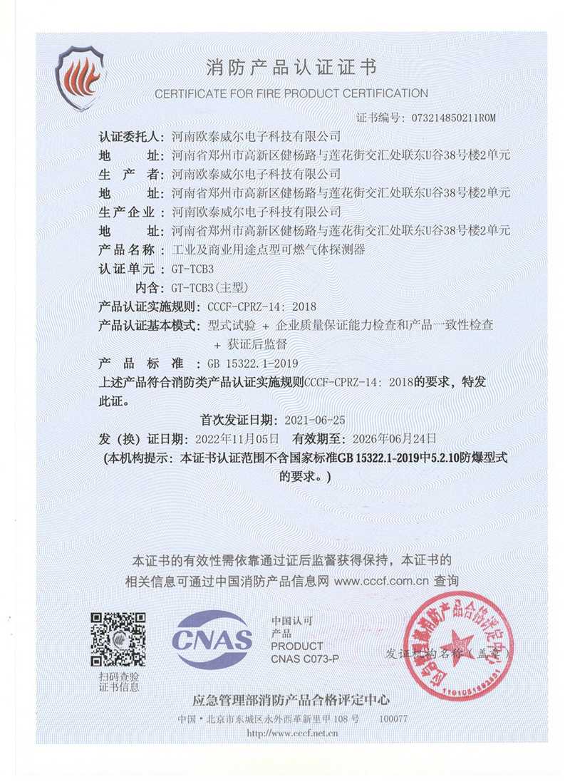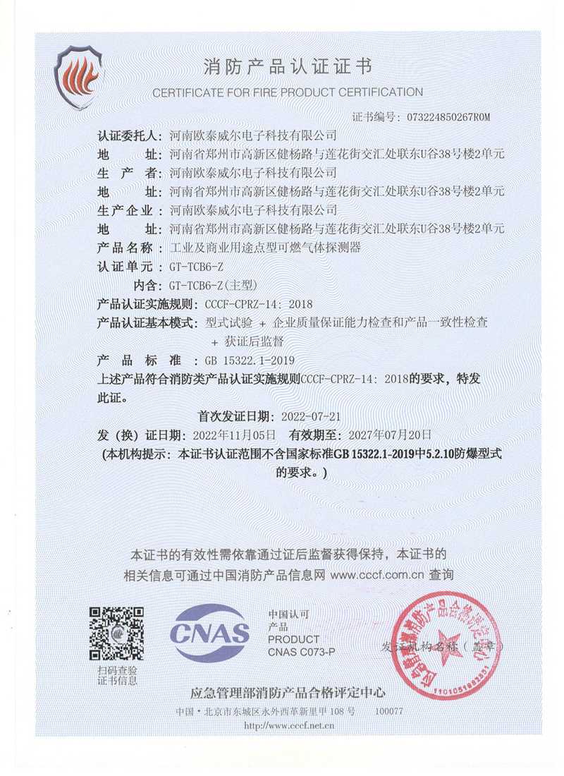 歐泰威爾作為國內(nèi)較知名的物聯(lián)網(wǎng)氣體探測儀器制造商,公司高度重視與國內(nèi)外大專院校的技術(shù)創(chuàng)新與學(xué)術(shù)成果交流,擁有專業(yè)氣體探測研發(fā)機(jī)構(gòu),專業(yè)質(zhì)檢生產(chǎn)工藝及相關(guān)檢測設(shè)備,技術(shù)力量雄厚,并不斷致力于產(chǎn)品品質(zhì)提升,公司及產(chǎn)品先后取得國家防爆電氣產(chǎn)品合格證、國家防爆電氣安裝、修理、維護(hù)資格證,國家應(yīng)急管理部消防產(chǎn)品CCCF認(rèn)證,國家計(jì)量器具形式批準(zhǔn)證書等并在國家權(quán)威部門形式注冊。